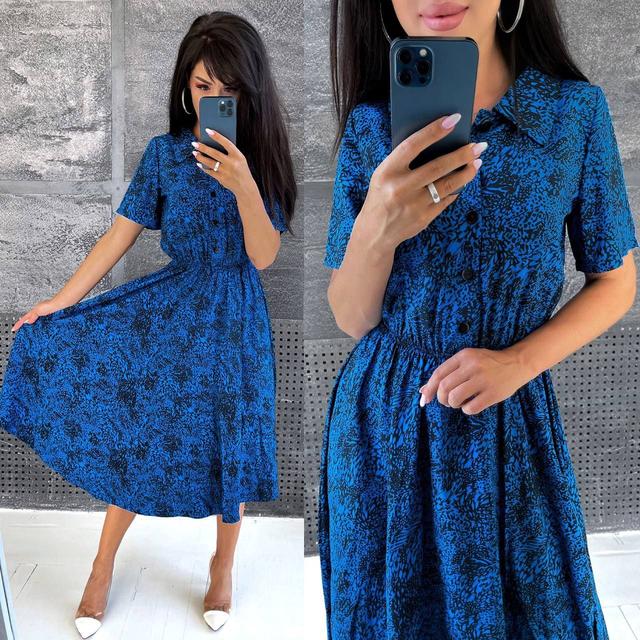 Літня сукня сорочка в принт довжиною міді з коротким рукавом (р. 42-52) 9PL4111