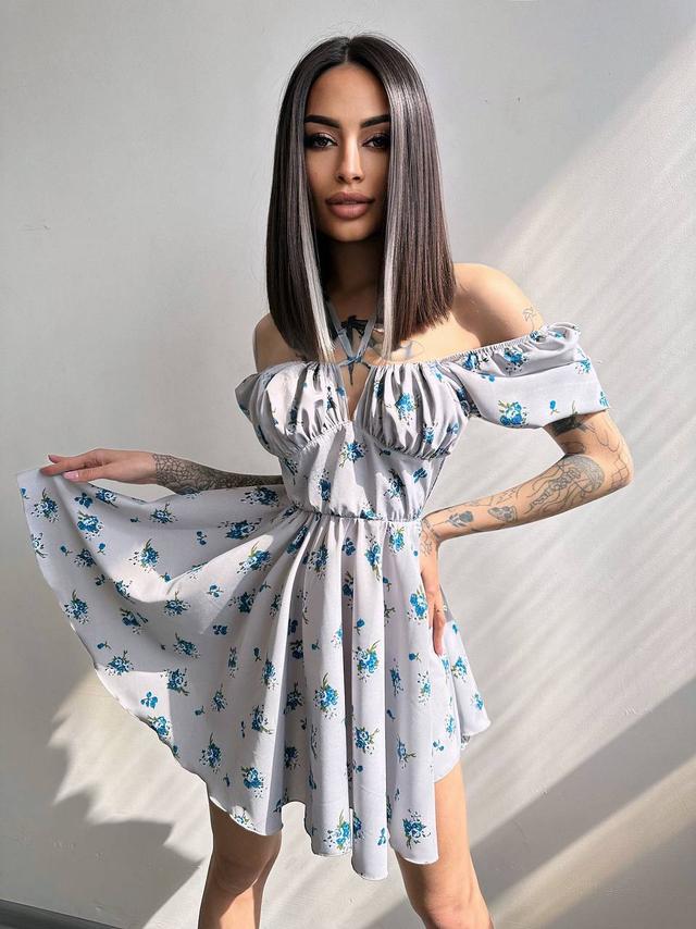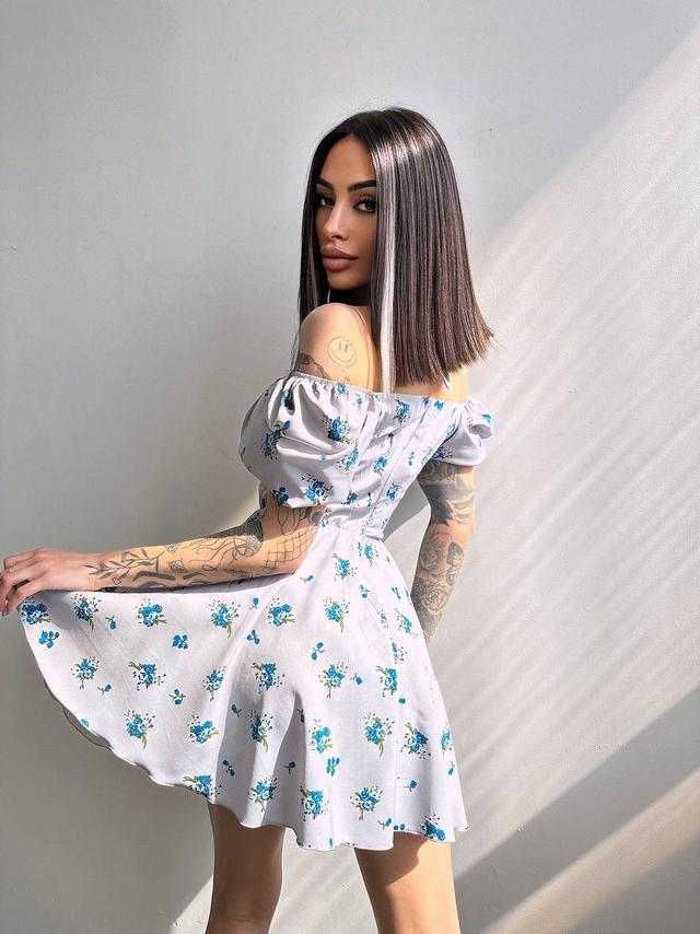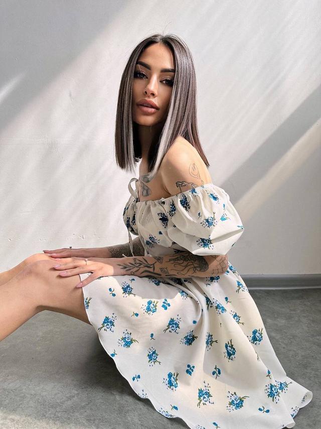 Коротке плаття з відкритими плечима з призбираним верхом і пишною спідницею (р. S, M) 66035271Е