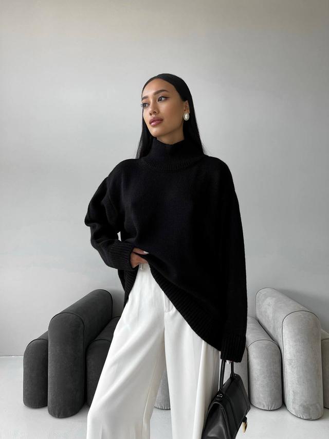 Жіночий светр вільний в'язаний із високим коміром (р. 42-46) 4043244