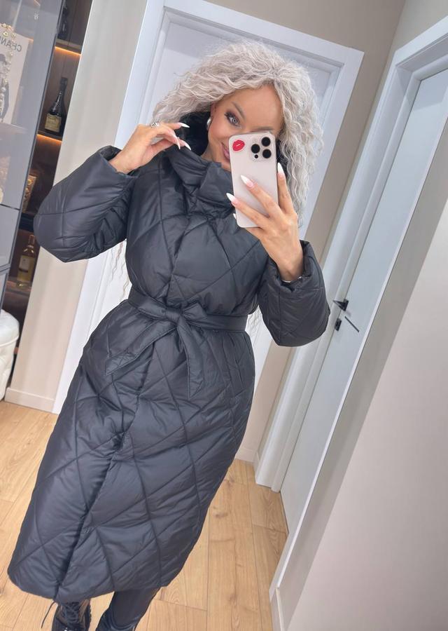 Жіноче стьобане пальто пуховик довге з капюшоном і поясом (р. 42-50) 65PA254