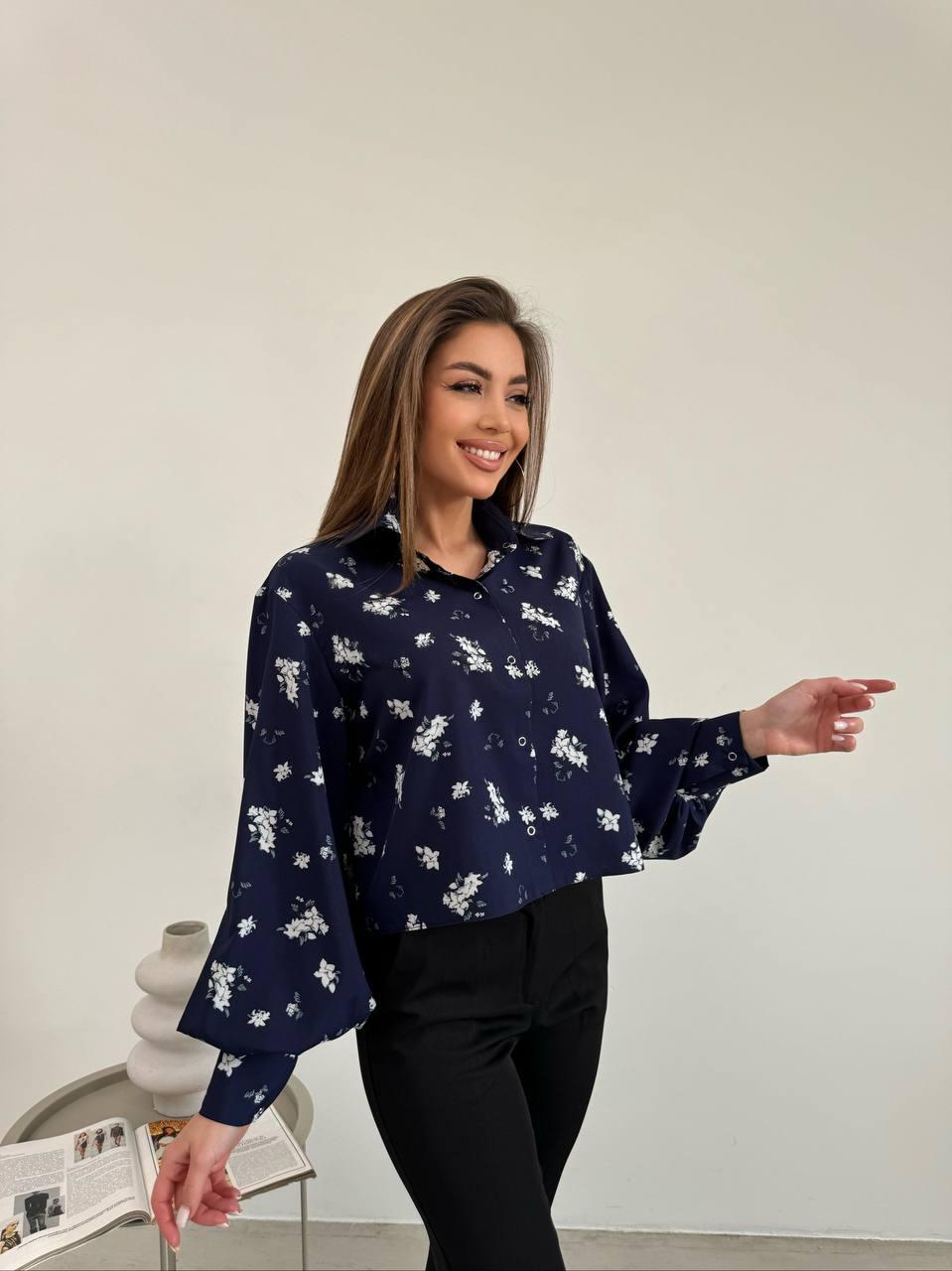 Сорочка укорочена прямого крою з рукавами ліхтариками у квітковий принт (р. 42-48) 2131044
