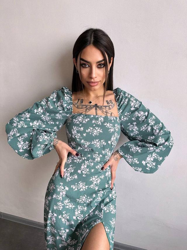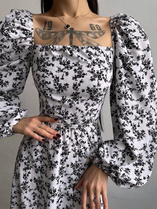 Приталене міді плаття зі шнурівкою на спині та розрізом на спідниці в квітковий принт (р. S, M) 66035594Е