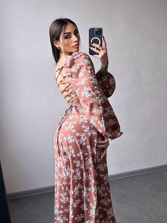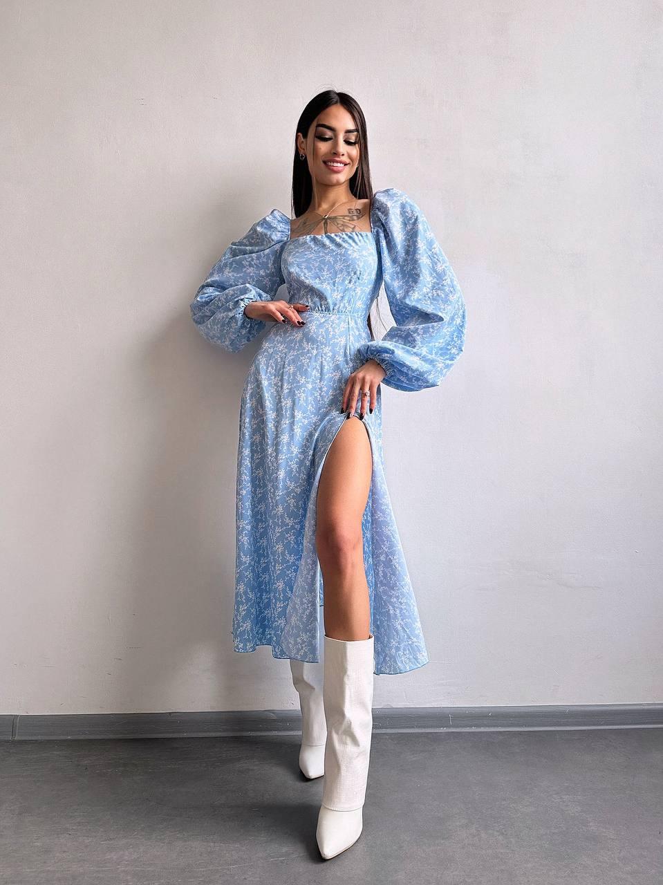 Приталене міді плаття зі шнурівкою на спині та розрізом на спідниці в квітковий принт (р. S, M) 66PL5594Е