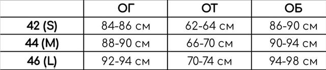 | Розмір жіночого одягу (UA) | 42/46 |