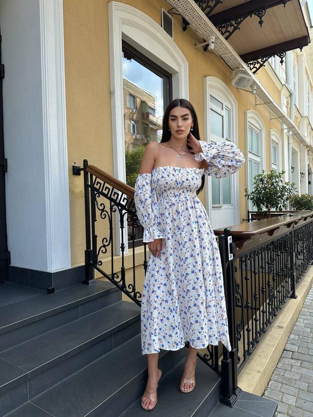 Сукня міді муслінова зі спущеними рукавами та резинкою на грудях (р. 42-46) 63PL5773