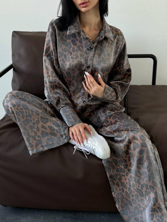Жіночий костюм брючний у леопардовий принт зі штанами палацо та вільною сорочкою (р.42-48) 63103678