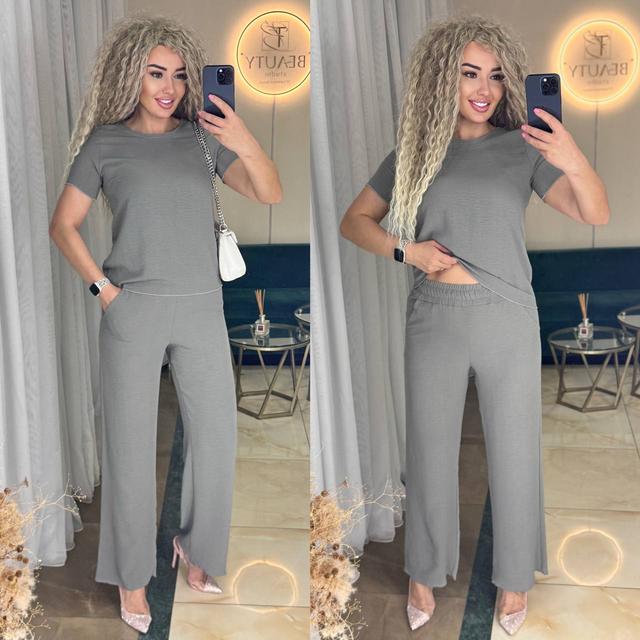 Жіночий костюм штани прямого крою та вільна футболка однотонна (р. 42-52) 2KO3823