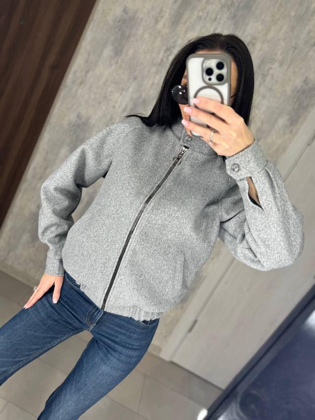 Жіноча куртка бомбер на блискавці з коміром-стійкою кашемірова (р. 42-50) 85KU1285