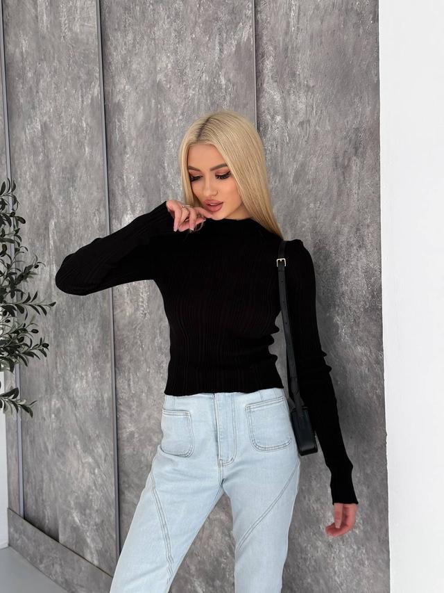 Однотонний жіночий гольф із бавовни тонкого візерункового в'язання (р. 42-46) 61KF3429