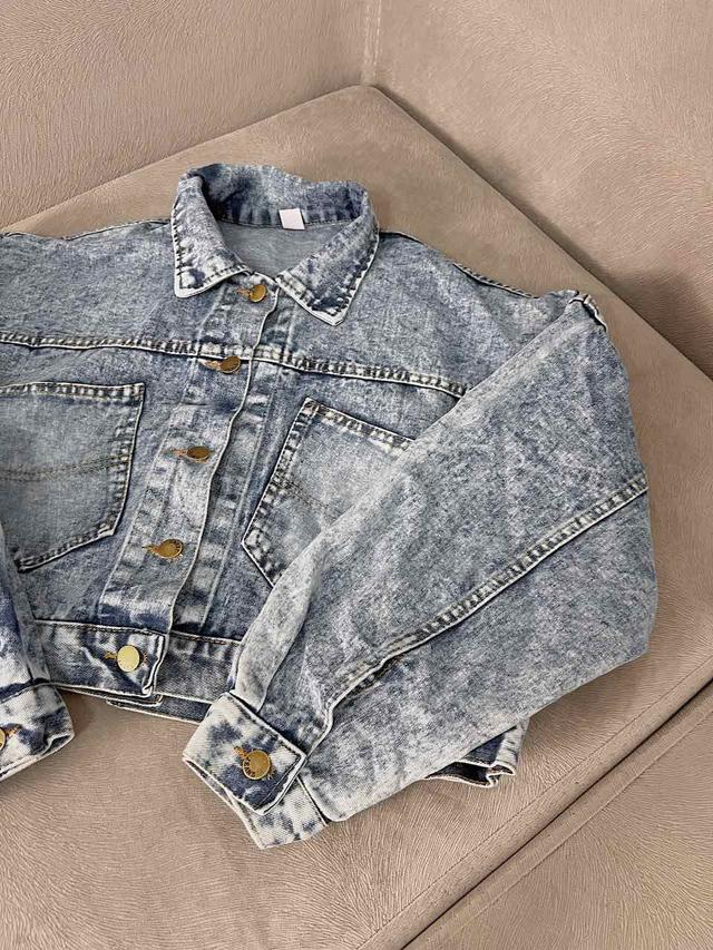 Укорочена джинсова куртка жіноча оверсайз з кишенями (р. 42-44) 10KU1287