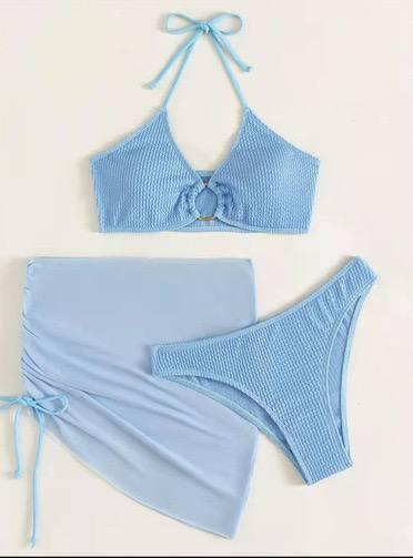 Купальник-трійка з жатки ліф із кільцем і чашками спідниця з затяжкою і плавки (р. S, М)