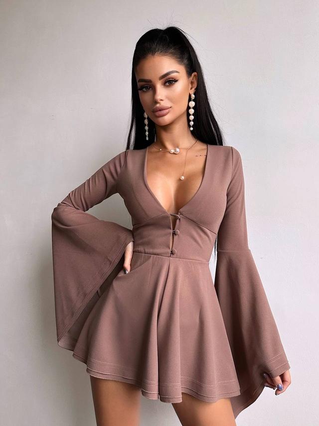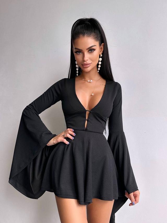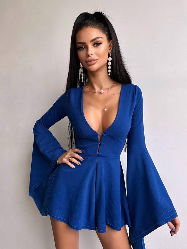 Жіночий ромпер-комбінезон із розкльошеними рукавами та вирізом на грудях (р. 42, 44)