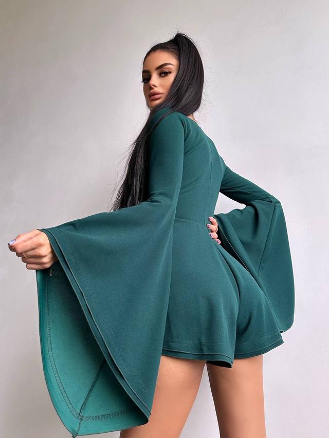 Жіночий ромпер-комбінезон з розкльошеними рукавами та вирізом на грудях (р. 42, 44) 66KO3861Е
