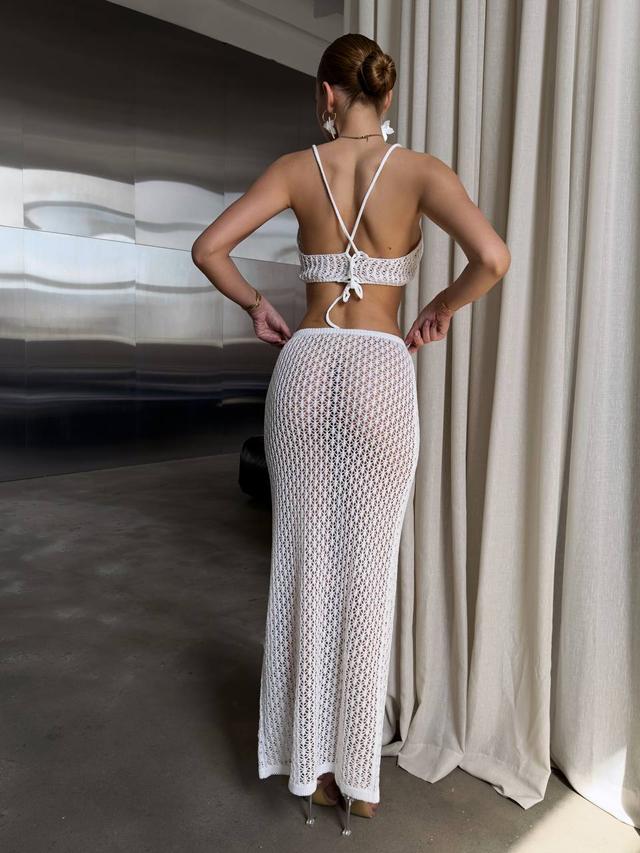Пляжний комплект у сіточку топ на бретелях і довга спідниця на резинці (р. S-L)