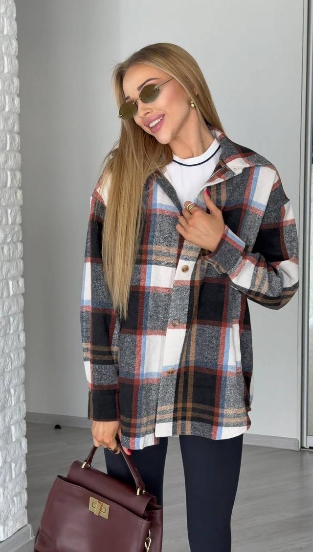 Жіноча картата сорочка тепла вільного фасону (р. 42-46) 16BL1117