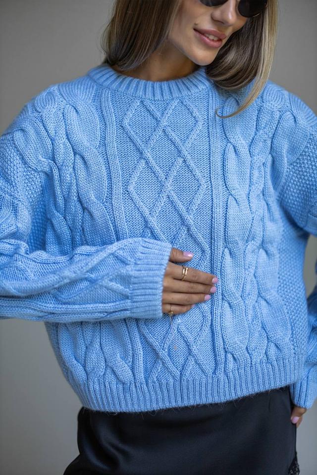 Жіночий теплий светр ажурного в'язання з геометричним візерунком (р. 42-46)